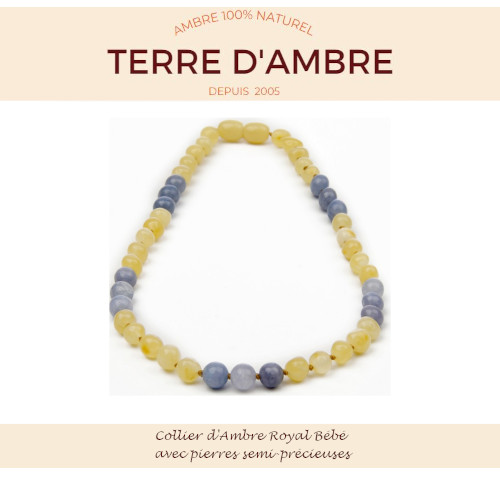 Le collier d'ambre bébé non poli miel avec pierres semi-précieuses, pour vous en citer un autre, est composé de :